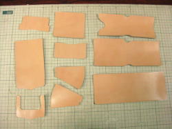 1. 型紙を革に銀ペン等で写し、ケガキ線より一周り大きく切り出し、