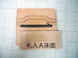 まず、【札入A】に縫い穴をあけます。 【札入A】の床面に縫い線をケガキます。