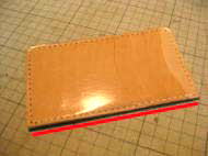 | 4. 先にケガいた位置に【ポケット】を接着し、ベースに縫い穴を貫通させ、縫いつけます。 | |||||