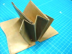 写真の様に、【仕切り】の端を【マチ】で包む様に合わせ、縫いつけます。